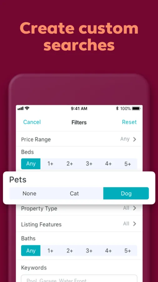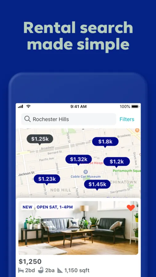 • Custom Searches: Customize your rental search by location, price, number of beds and baths, pet friendliness, and more.
