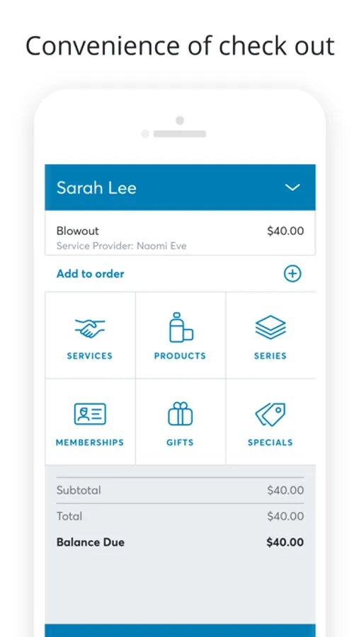 • Take cash, credit cards, checks, gift cards and gift certificates, series, memberships, Groupons, and credit account payments