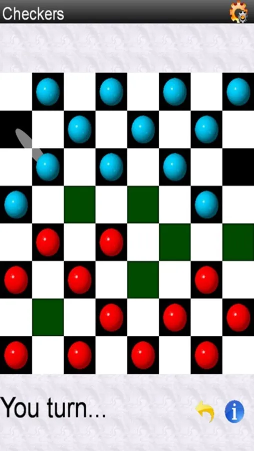 Pieces are moved by first selecting (tap) the piece to move and then selecting (tap) the cell to move to. If there is only one available move for selected piece, it will move by automatically (no second tap needed). Alternatively you can tap on the destination without selecting the piece (if only one piece can reach it). Normally blocks are black, however blocks current player can move to are colored in dark green. Selected piece is marked by bright green border. Use menu (top-right corner) to change difficulty, game type or check statistics.