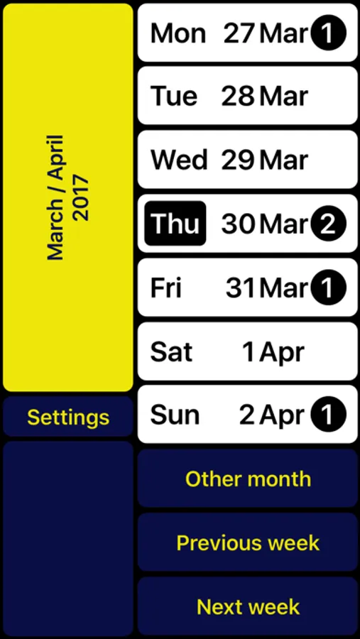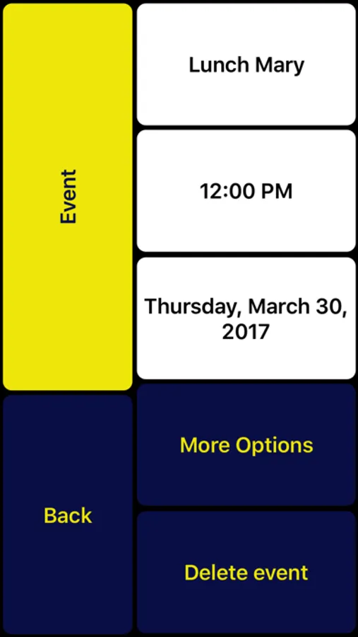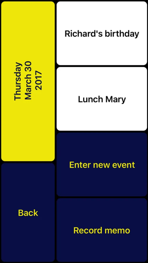 The result of this VoiceOver-only design is not only a smoother navigation through the app. It also makes it possible for the VoiceOver speech to give smart summaries depending on the context. This prevents you from having to go through each event