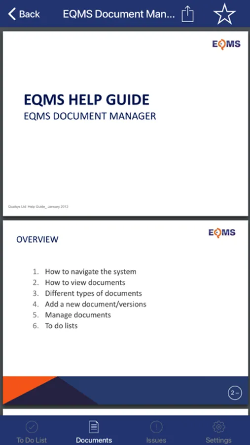 If you do not have EQMS in your organisation you can use the demonstration system for evaluation. Contact Qualsys through the iEQMS App if you require an EQMS system for your organisation.
