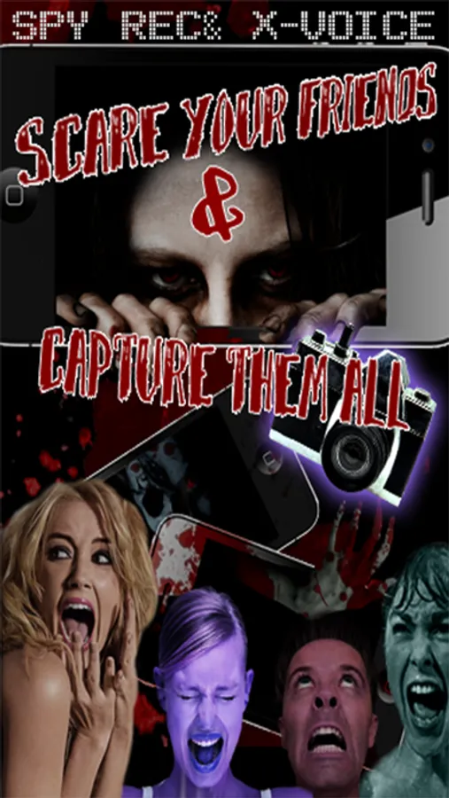 waiting for you to explore) . Run the app, give it to someone you'd like to scare and tell them it's an awesome game. While the "victim" is playing, a scary ghost(you can use several In-App ghosts or your own pic/video/audio) suddenly and unexpectedly jump out, together with a loud and scary scream. The victim is being video-recorded without knowing ;)