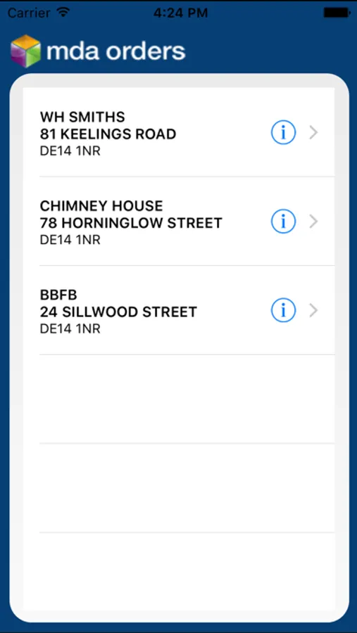 MDA Orders is an order tracking application for customers of MDA allowing the user to search by partial post code or order number.