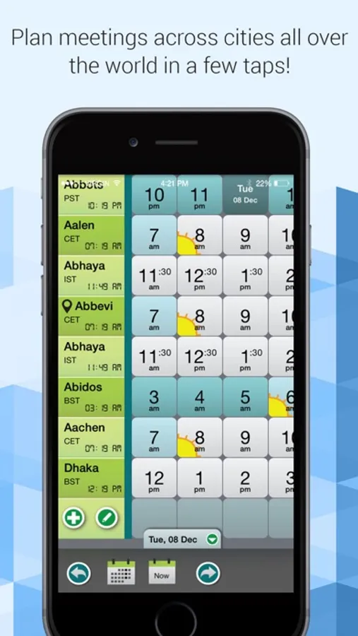 Do you find it mind boggling to plan a call or a meeting between people spread out all over the world? Is it too early for him and lunch time for her and dead in the night for him? TimePal solves this problem by giving you a simple and easy way to see all your friend’s time zones and find out the time that fits for all and email the meeting plan to them. Meeting planning has never been this easy and fun!