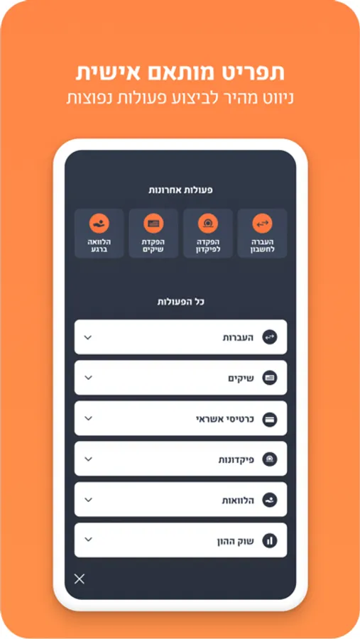 * פתיחת חשבון באפליקציה בקלות ובמהירות ללא הגעה לסניף