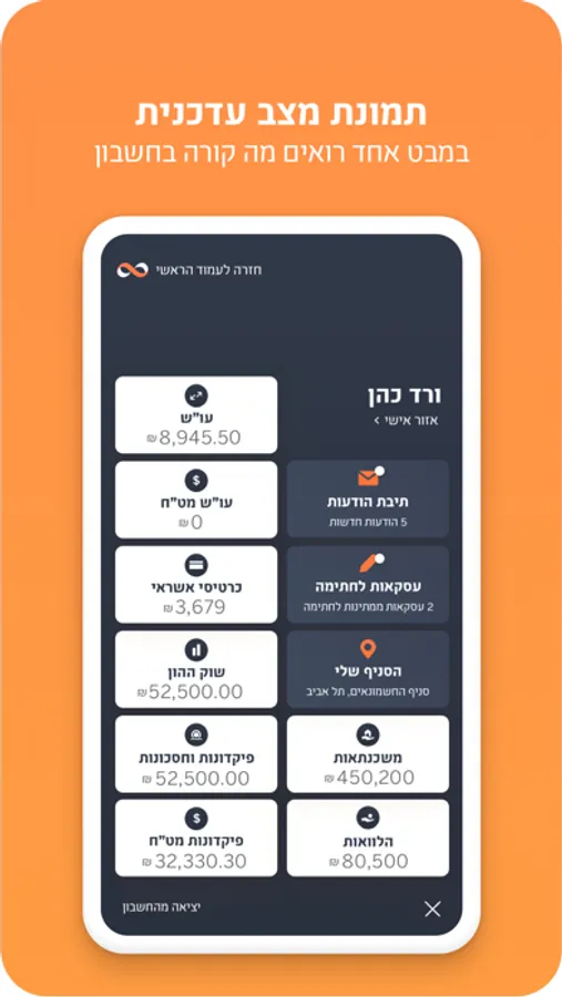 * מידע עדכני על התנועות בחשבון