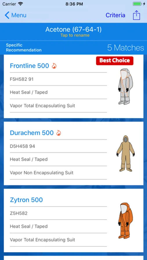 HazMatch® is an easy-to-use protective apparel selection tool from Kappler that allows a user to choose an appropriate safety garment based on a specific chemical hazard or a biohazard. HazMatch also allows a user to save search results to satisfy OSHA hazard assessment requirements.