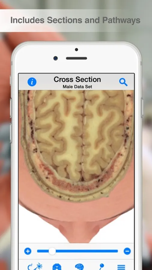 The intuitive navigation enables the user to navigate through the protective meninges layers and sub-cortical structures into the ventricles with the ability to view each layer in 3D. Additional cross sections and nerve pathways have also been added.