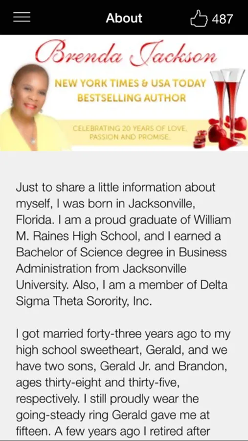 She has a fan page on Facebook and enjoy interacting with her readers in her national Brenda Jackson Book Club.