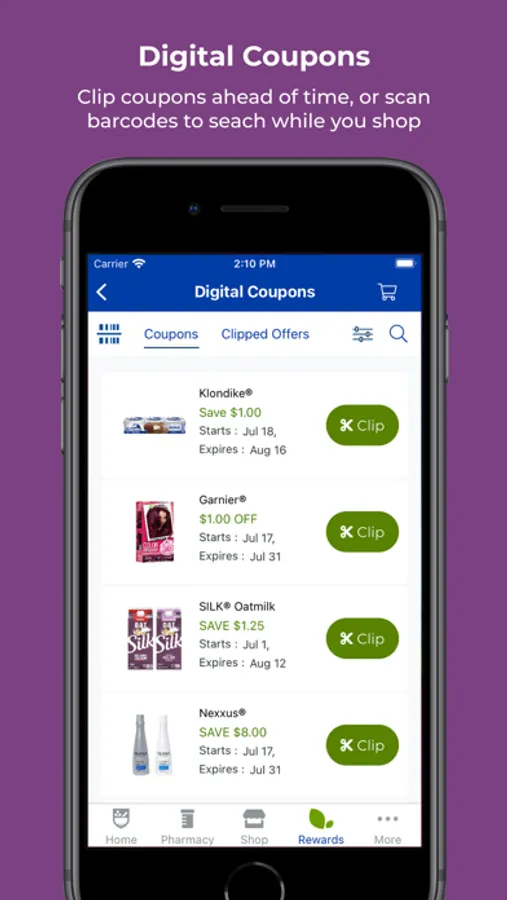 ● Browse, search, scan for, and clip Digital Coupons