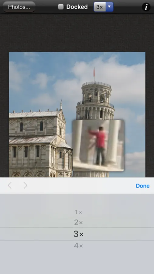 Enlarge your photos with this virtual magnifying glass. Tap and move your finger over the photo to quickly check every detail like the sharpness or hidden elements.