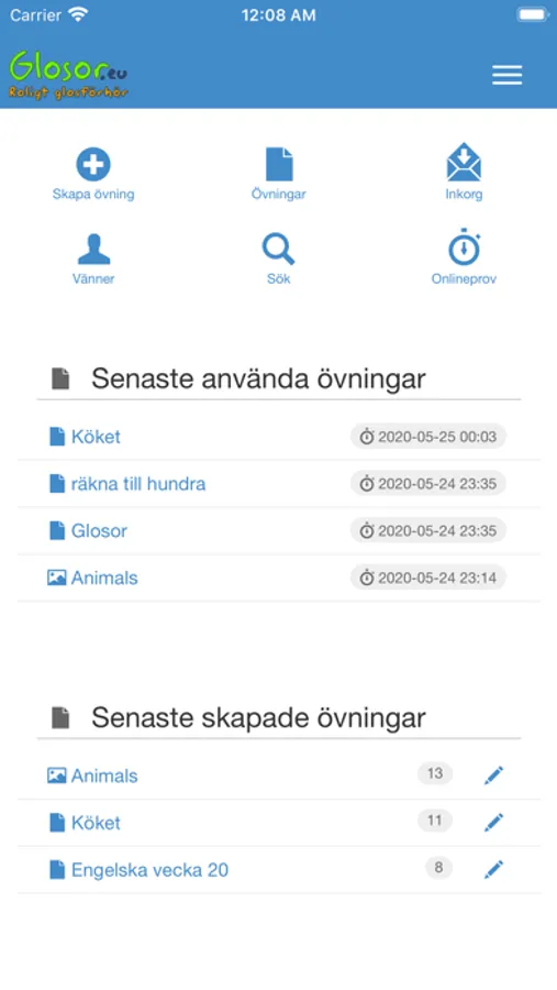 Använd dig av denna app för att lära dig glosor. Övningarna hämtas från ditt eller din lärares konto. Du kan också skapa egna övningar direkt i appen.