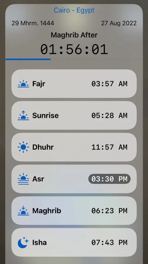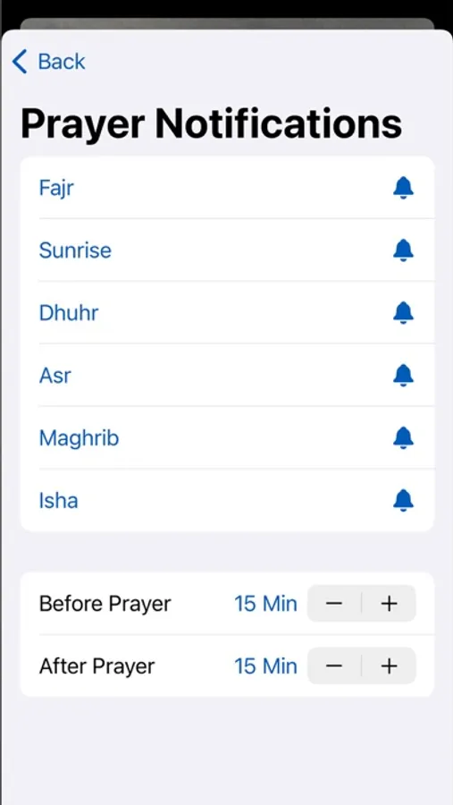 •عرض اوقات الصلاة، وتنبيهات في وقت الصلاة، وقبلها وعند الإقامة
