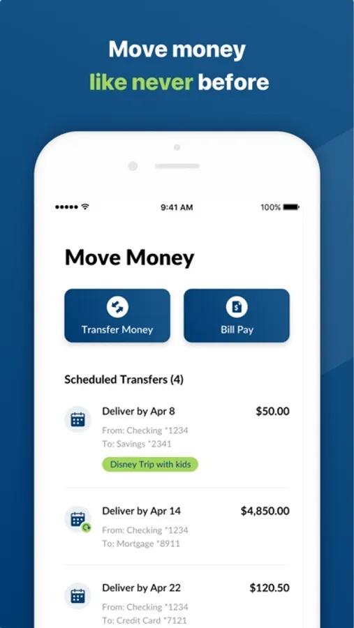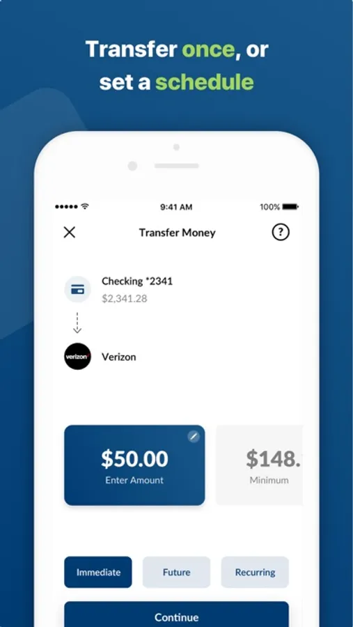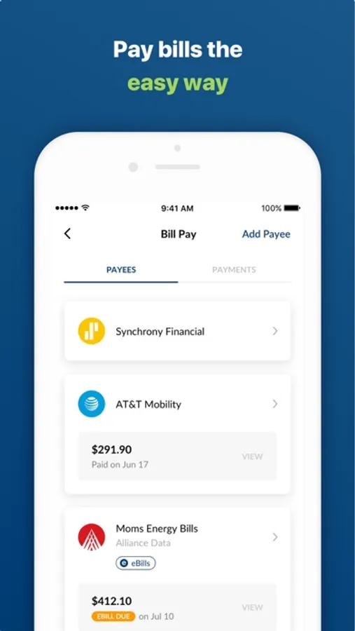 • Enroll in BillPay from the app, see your eBills, and schedule payments — both one-time and recurring