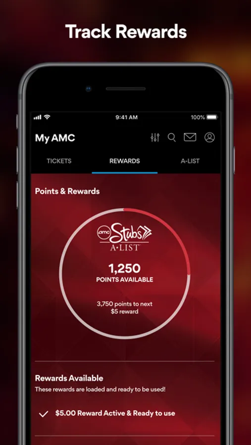 AMC Stubs: Log into your AMC Stubs account to earn and track points and rewards. Access your virtual card and scan it at the theatre to apply your savings and rewards instantly. A-Listers can make FREE movie reservations and Premiere members enjoy waived online ticketing fees.