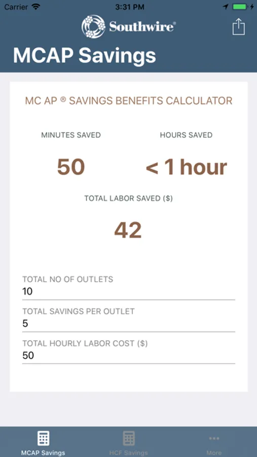 Based on the Total number of outlets, boxes and light fixtures, the App will provide you an estimated cost saving in time and dollars. You will be able to email the results as well.
