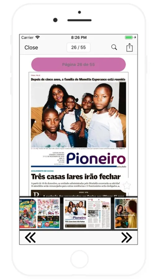 No iPhone e iPod touch, você também consegue acessar a lista de notícias da versão impressa do jornal.