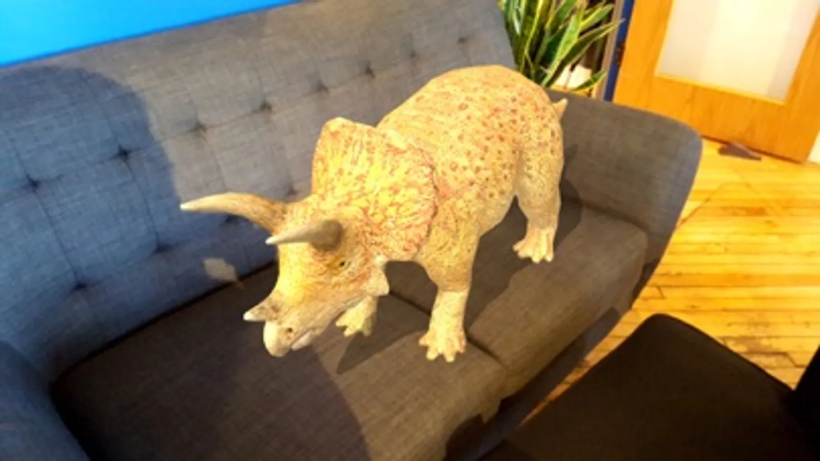 See and play with your very own dinosaurs! This cool augmented reality app lets you see a world of dinos. With Dino Cam, your camera-enabled device reveals dinosaurs all around you. Whether you're at home, outside or in between, just aim the camera and lifelike dinos will appear in the world you see through your camera.