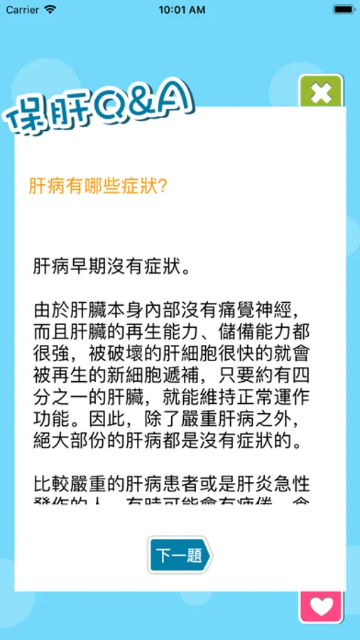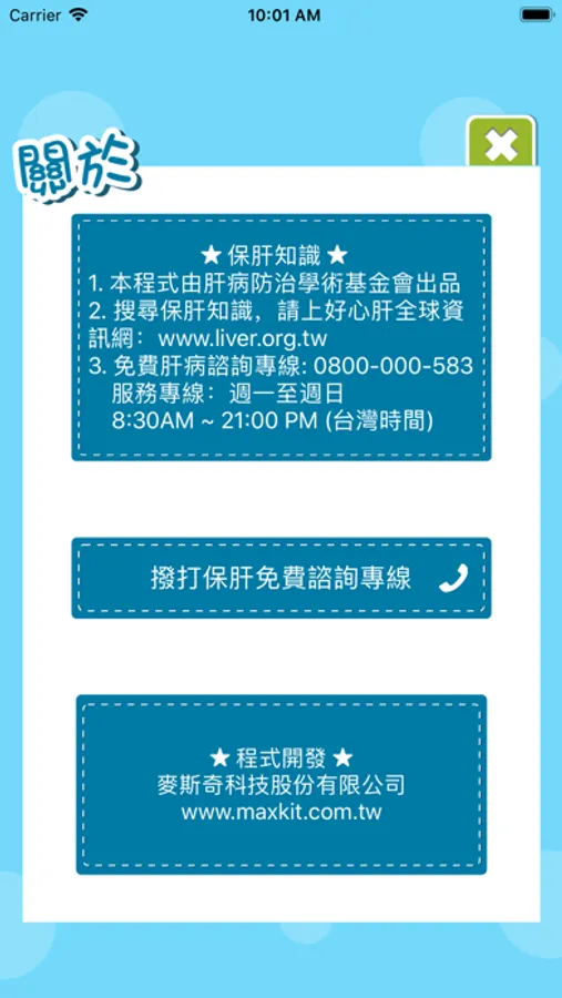 1. 本程式內容經由台大醫院粘曉菁醫師及亞東醫院翁孟慈醫師審稿,版權屬於肝病防治學術基金會,提供正確的肝病醫學知識,幫助您更加了解自己的肝。