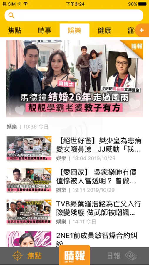 《晴報》為全港第2大免費報,是一份中肯持平的免費中文報章,網羅港聞、國際、財經、娛樂消閒、健康、親子及旅遊等範疇,提供貼身實用的資訊及智慧,並設名家專欄。《晴報》逢星期一至五免費派發,派點遍佈全香港。除文字版app外,還設有揭頁版app及網上版:www.skypost.hk。