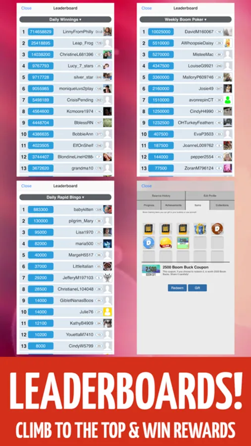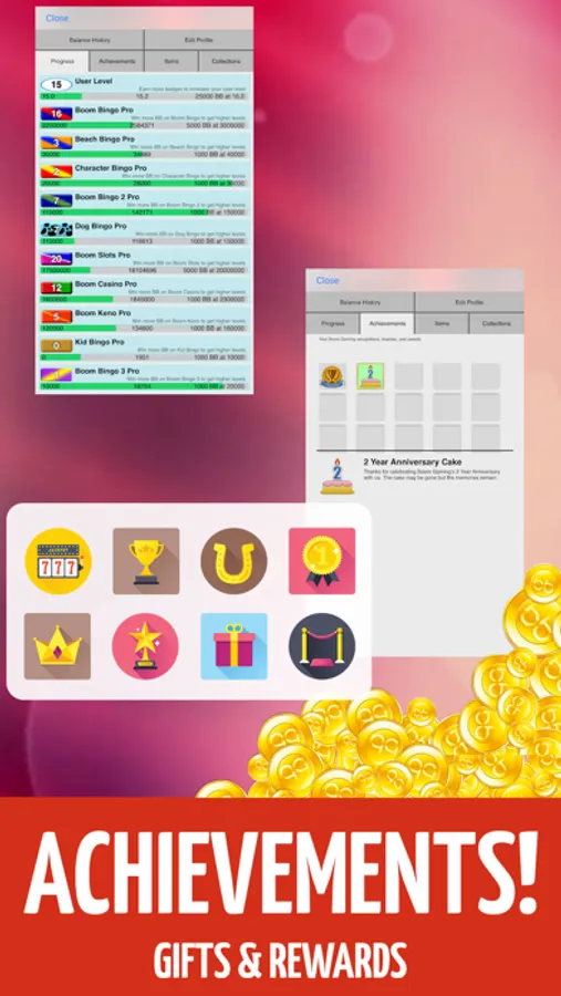 - BINGO your way to HUGE WINS while collecting achievements and becoming #1 on the LEADERBOARDS.
