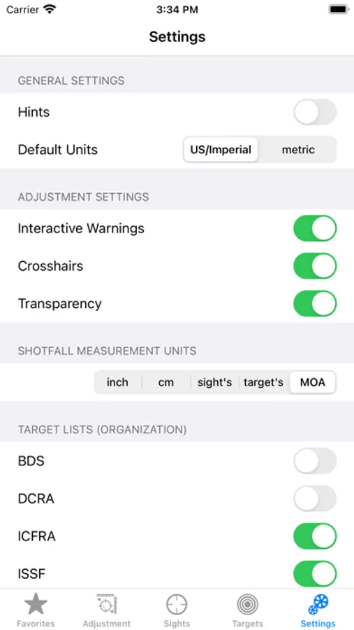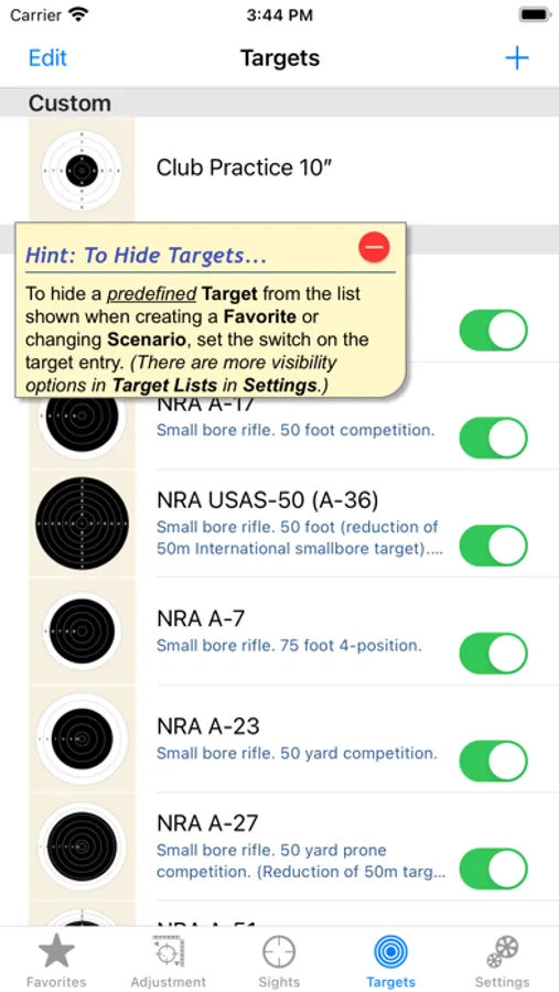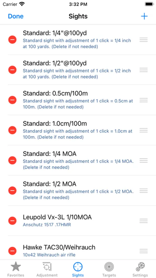 And to make it easy to set up your sights time and time again, you can quickly create favorites to hold the common combinations of sights, targets and distances that you use.