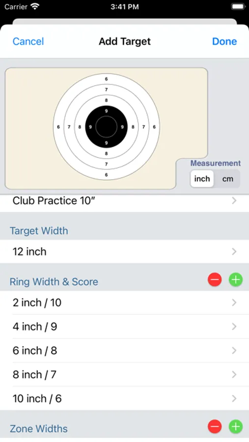 SightSet solves the problem by removing the manual errors. It calculates adjustments for you, based on the shot fall that you actually observe. Match your sight against one the predefined sight definitions (inch, metric or MOA). Match your target against one of the 140+ common small bore, high power, air-rifle, pistol or air-pistol targets. Tell SightSet the distance. Then just plot your shots as you take them on a zoomable screen showing a copy of your target.