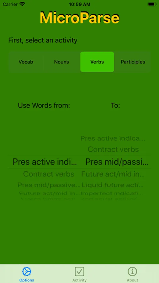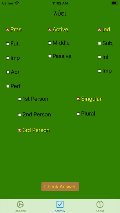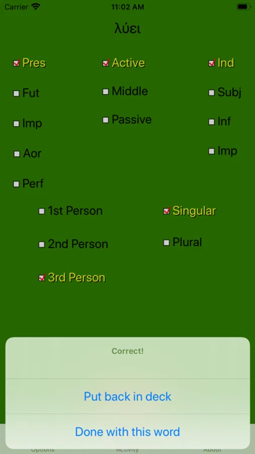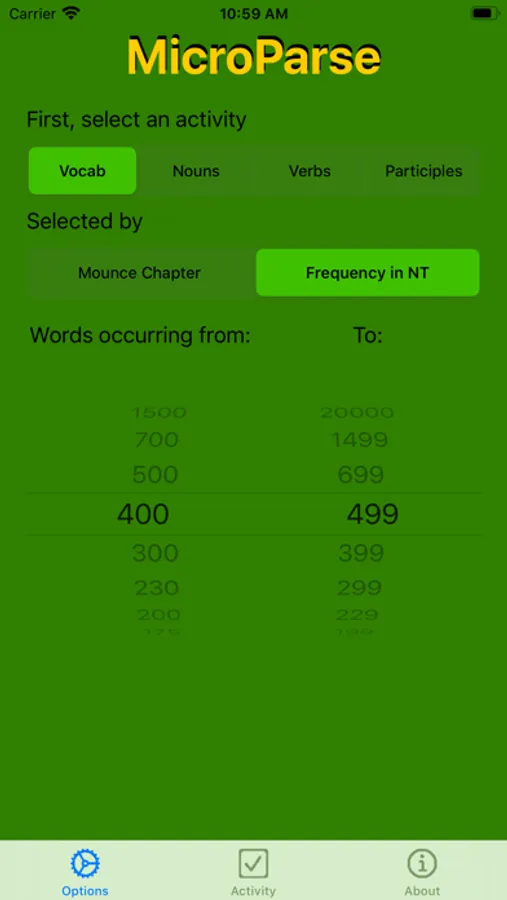 Practice your New Testament Greek parsing and vocabulary. This is much more helpful than flashcards, providing hints and feedback to guide you to the correct answer in the parsing of nouns, verbs and participles. You can select ranges to practice, such as only aorist, or present and future. Vocabulary can be selected by frequency in the New Testament, such as words that appear 100-199 times, or by chapters in Mounce. This app is an efficient and convenient way to practice your Greek.