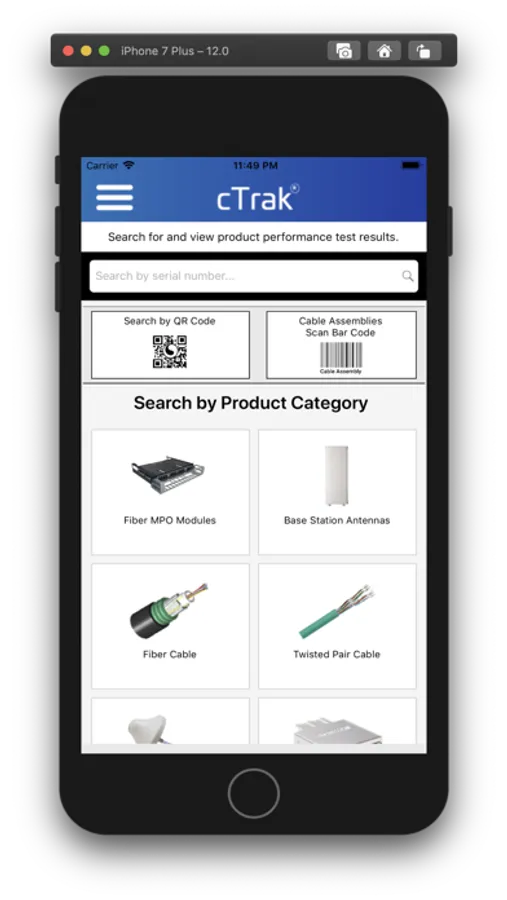 Because your time is important, we made locating product information as simple as a tap of a button or scan of a code. CommScope cTrak provides you with access to product information on the go. With a fast scan of the barcode, QR code or by typing in the serial number located on the product you can easily access a variety of valuable product information such as test reports, installation instructions, specifications and much more. CommScope and cTrak: pushing what’s possible.