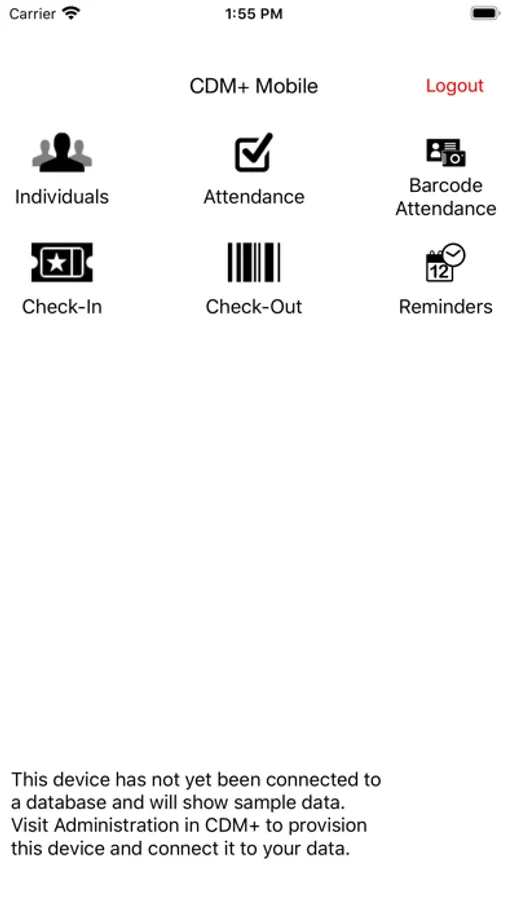 CDM+ Mobile offers six main features: viewing information on individuals in your CDM+ database, tracking attendance, running barcode attendance, running check-in, running check-out and for regional users, viewing church information. Individuals allows you to mass e-mail individuals, display the name, family members, photos, birth date and place, school, marriage date and place, work location and death information of individuals in your CDM+ database. Phone numbers and e-mail addresses are listed, and an interactive map to the primary street address is displayed. In addition, all attendance history for an individual is available, along with contributions over the past year for an individual. Finally, you have ability to add, view, edit and delete visitation and pastoral notes on the fly.