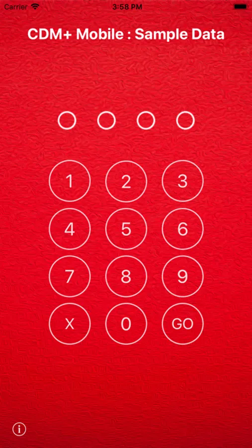 NOTE: By default, CDM+ Mobile shows sample, fictitious data and will accept any PIN. Once you configure CDM+ Mobile with a provisioning code, you will see data from your CDM+ database and will be required to enter the PIN for your provision.