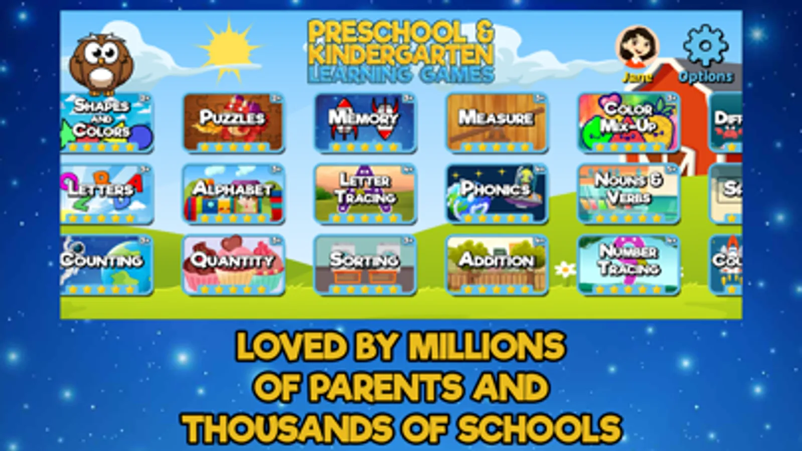Our preschool & kindergarten games and lessons are used by millions of parents and teachers to help educate and entertain young kids. Our app encourages their learning and helps them be enthusiastic about important school subjects, including spelling and reading..