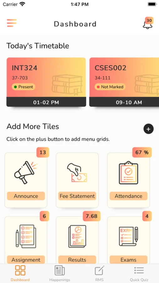 Staff members can remain in touch with the University Management System, 24 x 7, through this app. For the staff, the app has a number of features like: