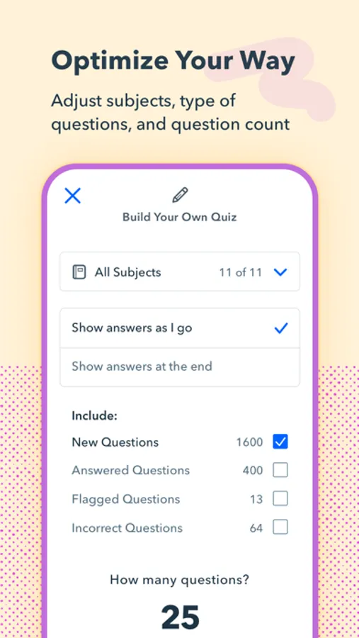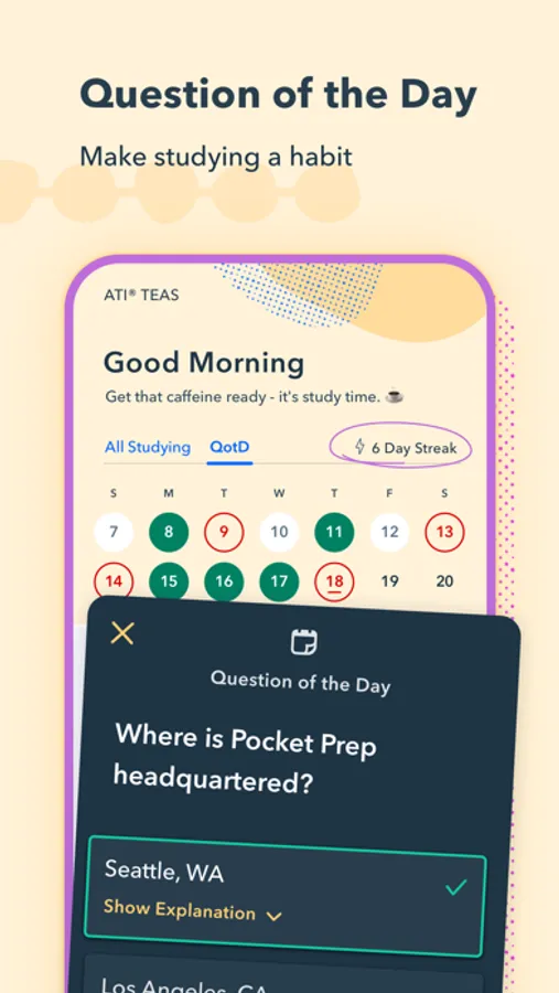 Scientific research shows that studying in short bursts over time is more effective than a handful of long study sessions. Our app is built with this in mind, giving you the power to study from your phone whenever and wherever it’s convenient for you. Easily access practice questions while waiting in line, on public transit, on meal breaks, and more!