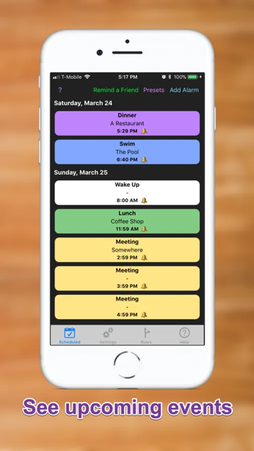 This app will automatically wake you up every day before your first calendar event and alert you about events during the day.