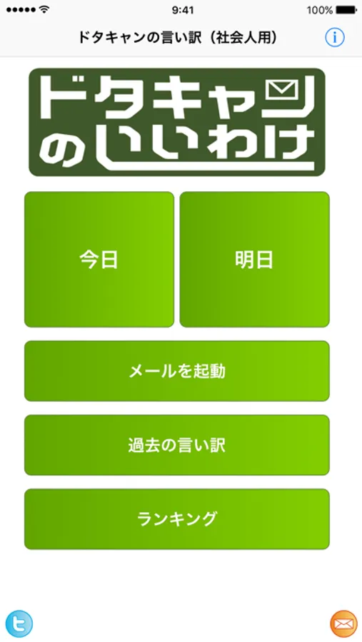 7.画面右下のメールボタンで、知人にアプリを紹介することができます。