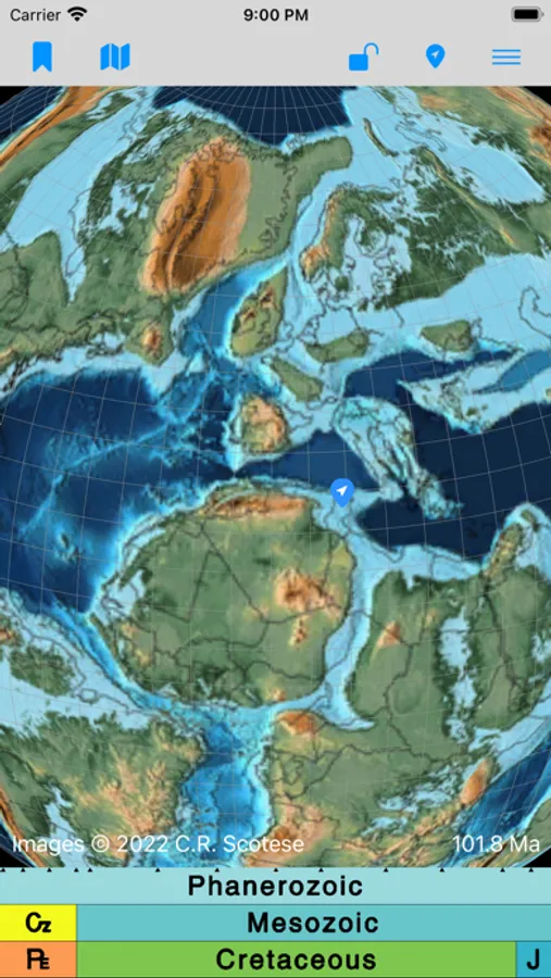 Have you ever wanted to travel back in time? Well, jump on the Ancient Earth time machine app and travel back to a time before the age of dinosaurs, before the evolution of flowering plants, before the last great Ice Age, and well before the appearance of the first humans on Earth. Ancient Earth: Breakup of Pangea vividly illustrates the breakup of the supercontinent of Pangea during the Mesozoic and Cenozoic (200 Ma-0 Ma). Watch as continents drift apart, mountain ranges rise and fall, new ocean basins open, landmasses are flooded by rising sea level, and polar ice caps wax and wane.