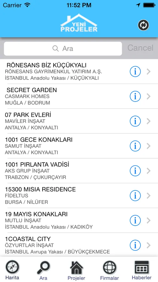 - Projeleri arayabilirsiniz. İçerik bilgisinin yanısıra dış mekan, iç mekan, vaziyet planı gibi resimleri bulabilirsiniz.