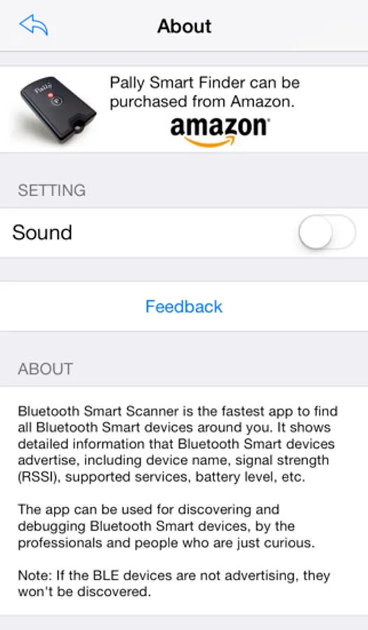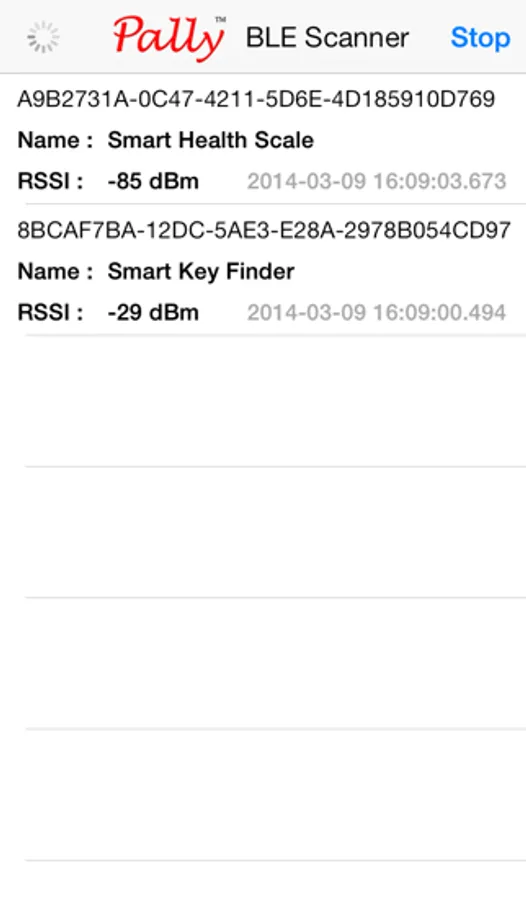 Bluetooth Smart Scanner is the fastest app to find all Bluetooth Low Energy (also known as Bluetooth 4.0 or Bluetooth Smart) devices around you. It shows detailed information that Bluetooth Low Energy devices advertise, including device name, signal strength (RSSI), supported services, battery level, etc.