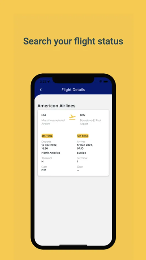 • Flight status – Check the status of your flights “On The Go” and look for terminal details, gate numbers and possible delays