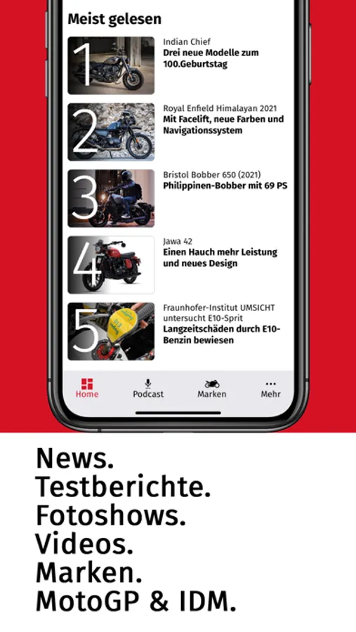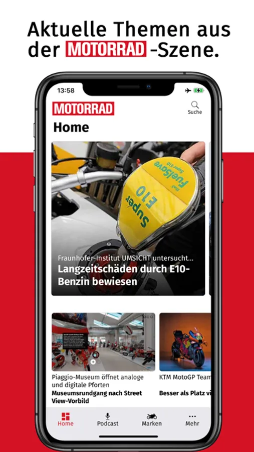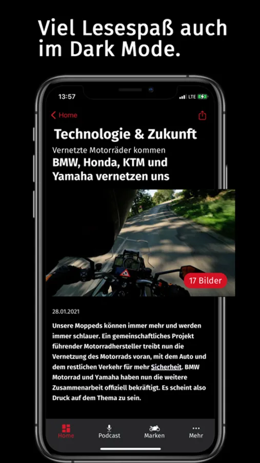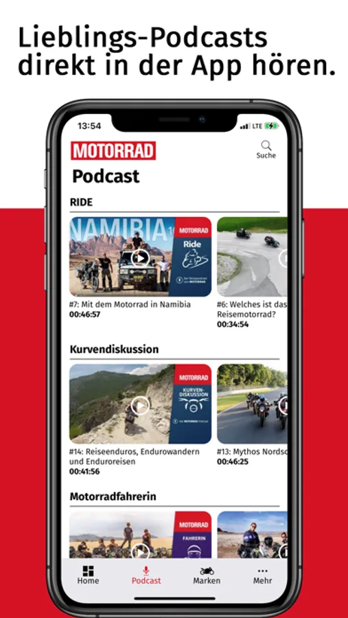 • Unsere beliebten Podcasts von MOTORRAD sind künftig direkt auf der Startseite der App oder in einem eigenen Tab der Navigation erreichbar und können direkt in der App angehört werden.
