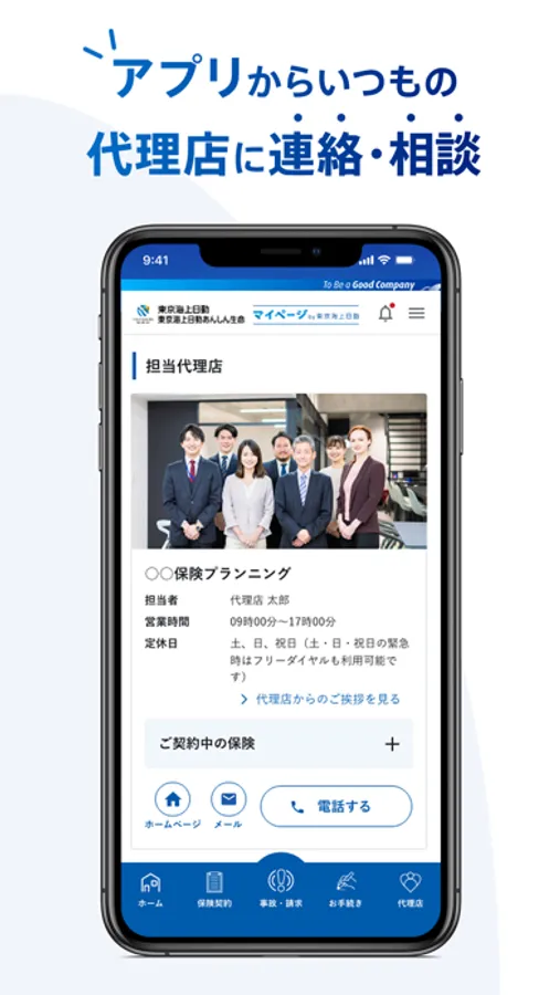 ・ご契約の代理店を自動表示、簡単に連絡・相談が可能