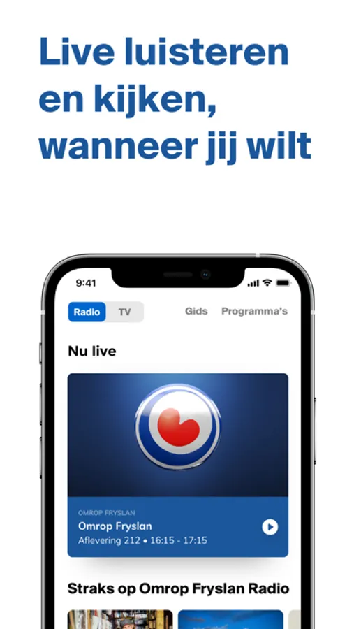 Volg belangrijke evenementen op de voet via onze livestreams. Kijk en luister via de app live naar onze programma's, zoals Fryslân Hjoed, HEA! of Op & Ut. Of wanneer het jou het beste uitkomt. Dan stiest der sa alder machtichst tichtby!