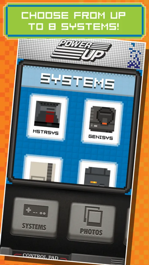 Featuring the latest in Blast Processing Technology, PowerUp filters your camera in real-time so that you can take photos using the same resolution and color palette as your favorite retro video game systems! Choose from 2 initial systems with the option to buy 6 more!