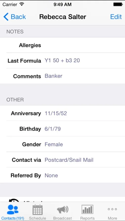 -View and Save Appointments, History, Previously Used Formulas, Photo, Notes, Birthdays, Anniversary, Gender, Allergies & More