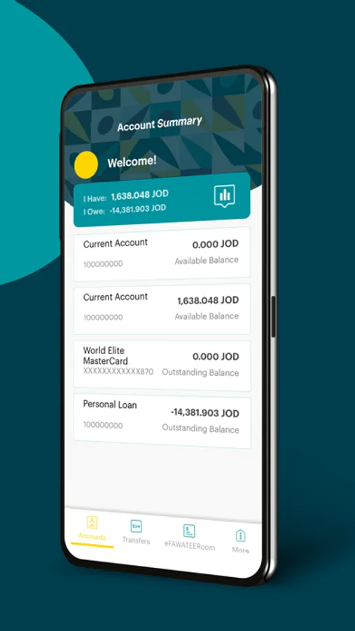 Welcome to Jordan Ahli Bank's mobile banking app, where you can fully manage your accounts. A wide range of banking services will be available to you, all of which can be completed conveniently, comfortably, and safely from any location.