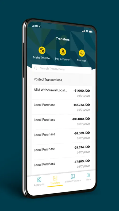 - Daily transfers of up to JOD 10,000 between your various accounts (you can adjust the daily limit through our contact center 065007777)