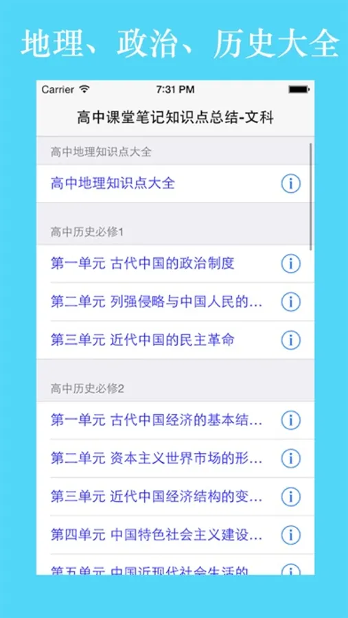 *****一个ios应用汇总高中文科:历史、政治、地理课堂笔记大全,省去记录课堂笔记的烦恼。