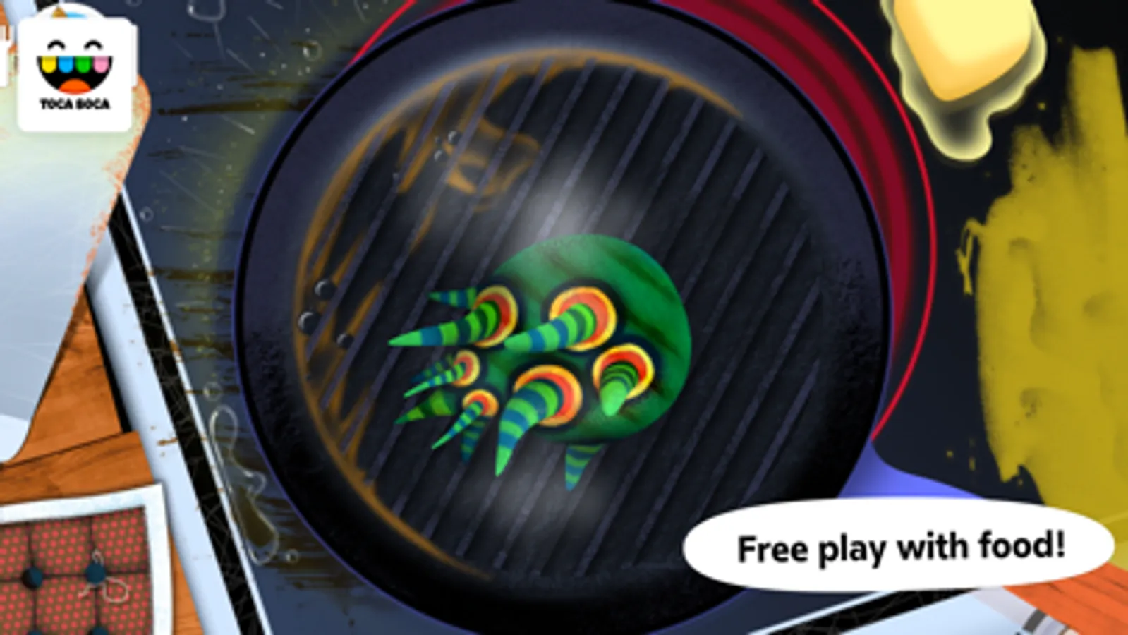 Toca Kitchen Monsters is not a game - it's a toy where you and your kids get to explore cooking. What happens if you mix a carrot and then fry it? What do Monsters like to eat? Why do the Monsters spit some food out if it is over-seasoned? Toca Kitchen supports free play for all ages and is a great way to use your imagination.