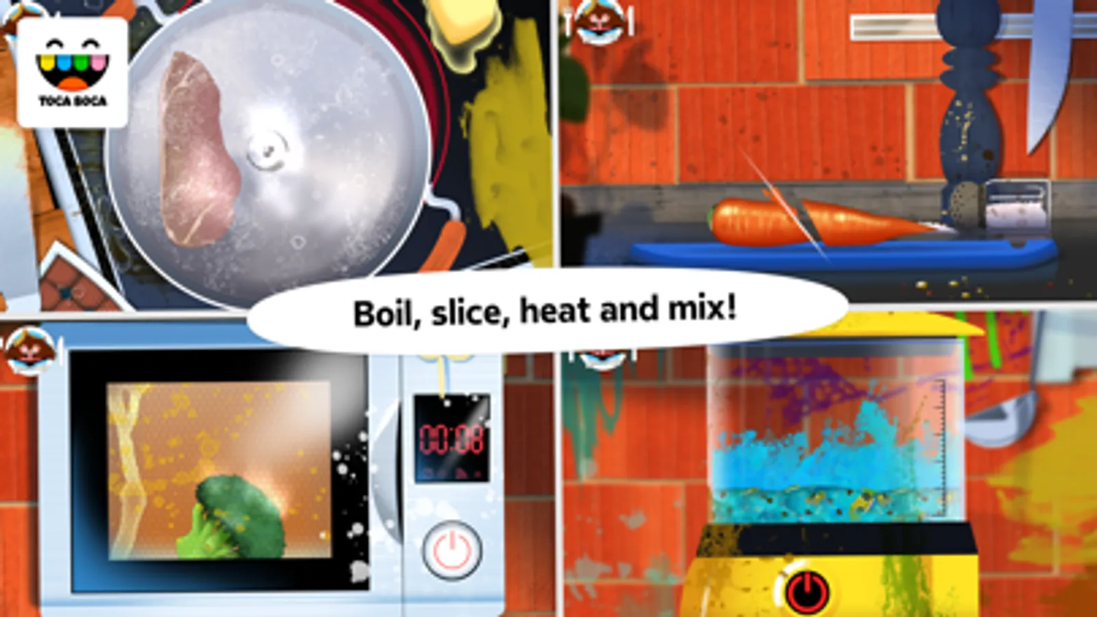 Now you can! In this Monster edition of the super-hit Toca Kitchen you can cook and play with food for two hungry monsters. Pick any ingredient and prepare it in your own way! Slice, boil, fry, cook, microwave or mix? And wait for the response from the hungry monster...